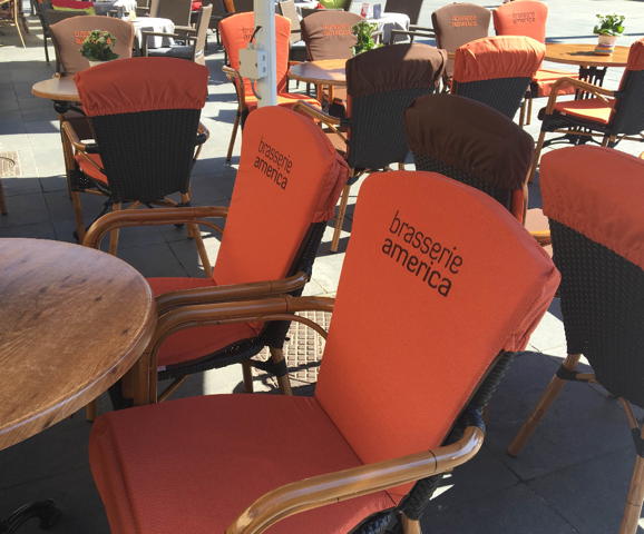 Chez AC-Terras, nous proposons des coussins de chaise sur mesure qui ajoutent non seulement confort et style à vos terrasses, mais également une image de marque supplémentaire pour votre entreprise. Nous offrons la possibilité d’imprimer ou de broder le nom de votre entreprise sur les coussins, pour que votre marque soit encore plus visible pour vos invités.